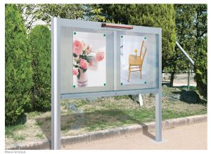 掲示板は学校や市役所のお知らせ表示に使ったり、サインボードは公園や遊園地の地図や駐車場マーク商品など様々な種類があります。加藤金物は商品紹介と販売もしてます。